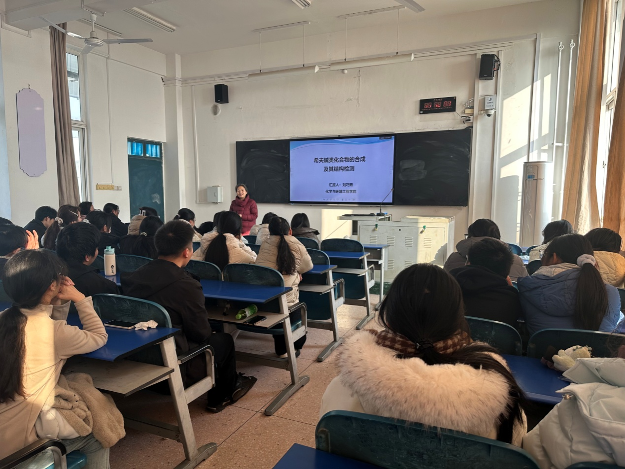 2025年12月18日下午,化学与环境工程学院刘巧茹教授在4号教学楼4403教室做了一场题为《希夫碱类化合物的合成及其结构检测》的学术报告,我院25、24和23级化学专业学生参加了此次学术活动。