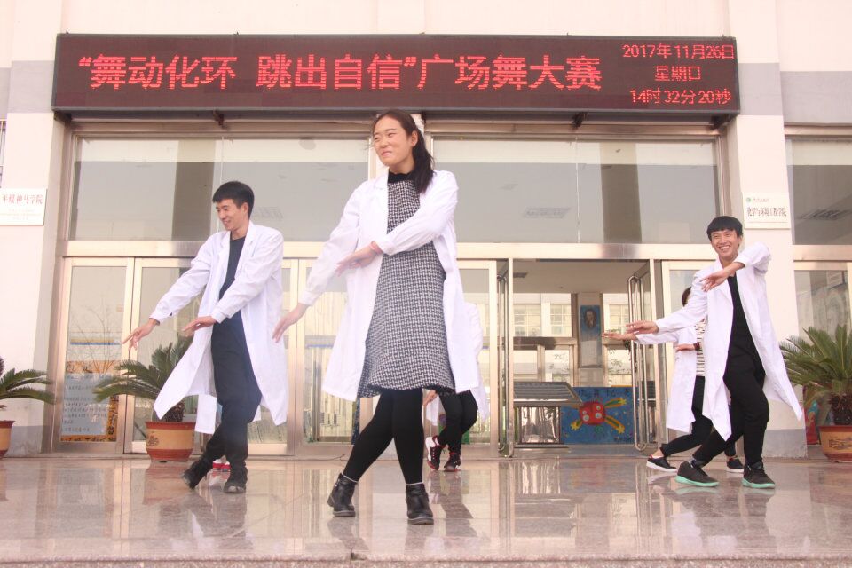 | 11月26日下午,化学与环境工程学院在化学楼前举办了以“舞动化环,跳出自信”为主题的广场舞大赛。2016级、2017级同学参加。