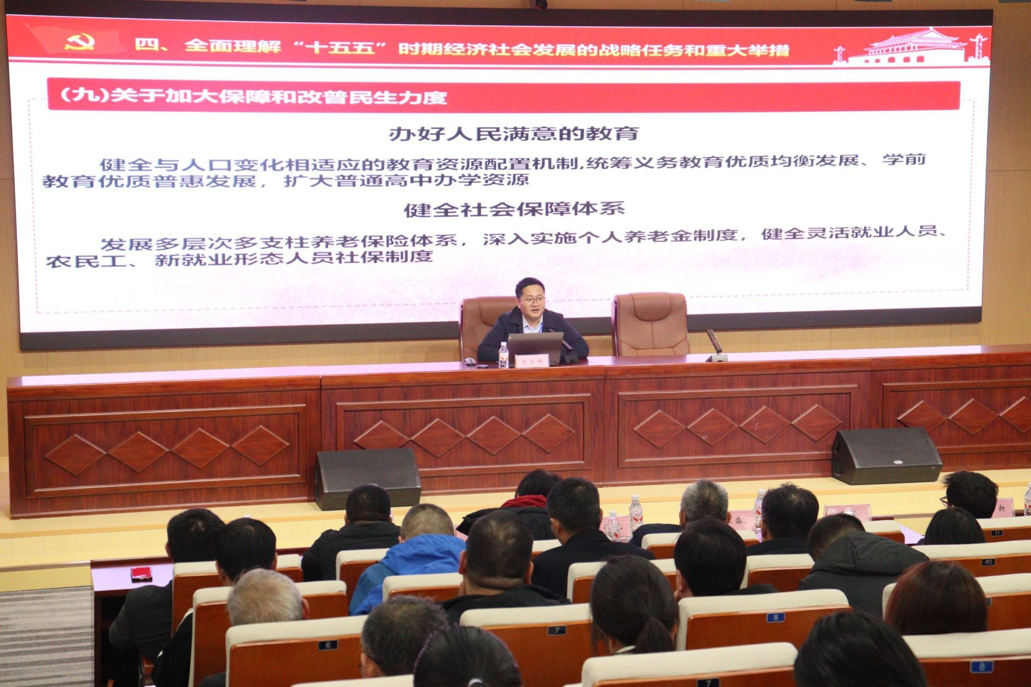 会上,米立伟结合学院学科建设实际及自身科研管理经验,围绕“充分认识党的二十届四中全会的重大意义、准确把握‘十五五’时期在基本实现社会主义现代化进程中的重要地位、深刻领会‘十五五’时期经济社会发展的指导方针和主要目标、深刻领会‘十五五’时期经济社会发展的战略任务和重大举措、坚持和加强党的全面领导,凝聚起推进中国式现代化的磅礴力量”五大方面,对党的二十届四中全会精神进行了全面系统的阐释。他指出,党的二十届四中全会是我国迈向基本实现社会主义现代化关键阶段召开的里程碑式重要会议,全会审议通过的“十五五”规划建议是推进中国式现代化的纲领性文件,全院师生必须提高政治站位,深刻领悟其重大意义与实践要求;在此基础上,他进一步解读了“十五五”时期作为关键过渡期的承前启后重要地位,深入阐释了这一时期以高质量发展为主题的指导方针和科技自立自强、民生福祉增进等主要目标,并结合学院学科优势,聚焦现代化产业体系建设等战略任务,强调学院要主动对接国家需求,在绿色化工研发、生态环境治理等领域精准发力,以产教融合、科教融汇推动科研成果转化;最后,他着重强调,坚持党的全面领导是中国式现代化的根本保证,学院要始终坚守为党育人、为国育才初心,全体教师需潜心治学育人,青年学子要树立远大理想、锤炼过硬本领,将个人发展融入国家大局,共同凝聚起推进中国式现代化的磅礴力量。