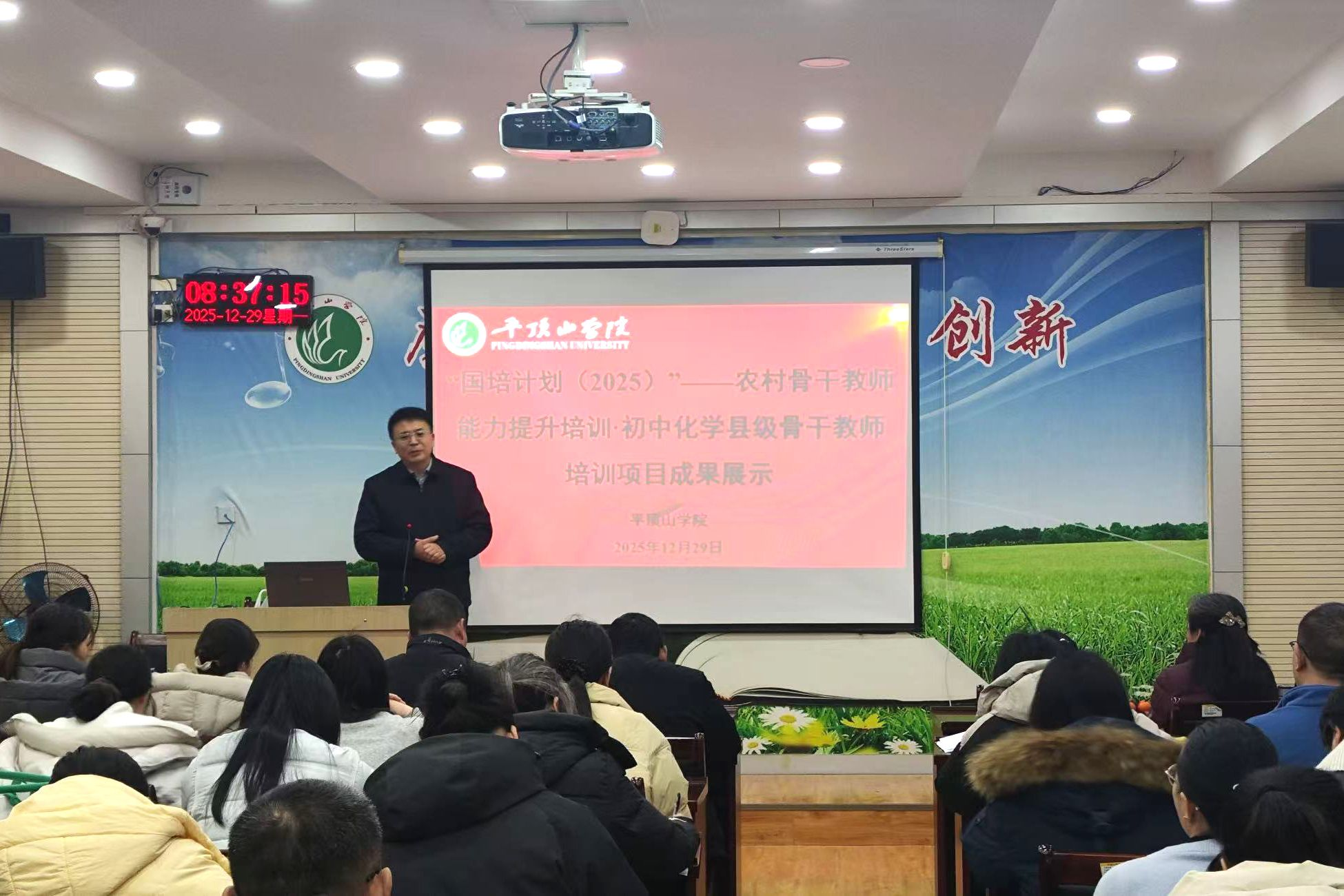 12月29日,以“虚拟仿真实验赋能县级及以下初中化学教学创新实践”为主题的“国培计划(2025)——农村骨干教师能力提升培训项目・县级骨干教师(初中化学)培训班”,在平顶山学院崇文校区B404教室圆满结业。化学与环境工程学院副院长罗晓强、刘巧茹教授、田正山教授,班级负责老师岳欢、马洋洋及培训班学员共同出席结业典礼。