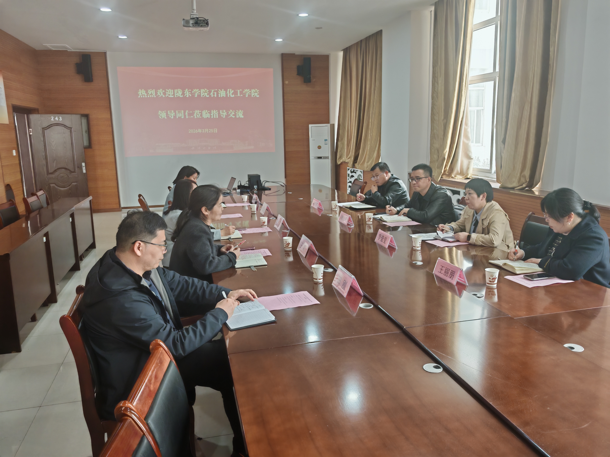 为深化校际合作,互学互鉴办学经验,聚焦化工专业认证、学科建设、人才培养、科研创新及产教融合等核心议题,3月25日,陇东学院石油化工学院院长李治军、副院长李莹莹带队,携学院骨干教师一行来我院开展专题调研交流。我院领导班子成员、相关科室负责人及骨干教师代表热情接待并参与交流座谈。